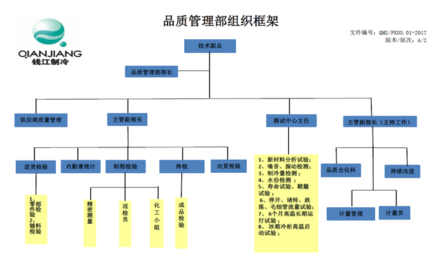 公司建立了良好的企業文化,確立了“創世界名牌企業、樹百年錢江制冷”企業愿景,“為顧客創造價值,為員工創造機會,為社會創造效益”經營理念。為適應現代國際化經營模式,經公司多年不斷的摸索和經驗的積累,已具備了較強的經營管理和市場開拓能力,并具有強烈的創新意識和持續發展意識,精心培育了一支適應企業現代經營管理的精英團隊。